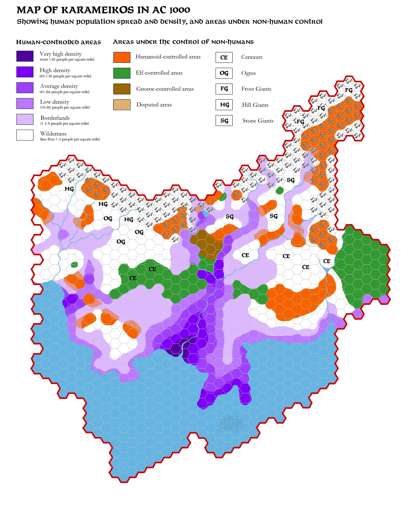 | 种族/群体 | 控制 8 英里格数 | 占总国土比例 | 总人口 | 控制区平均密度 (人/平方英里) |